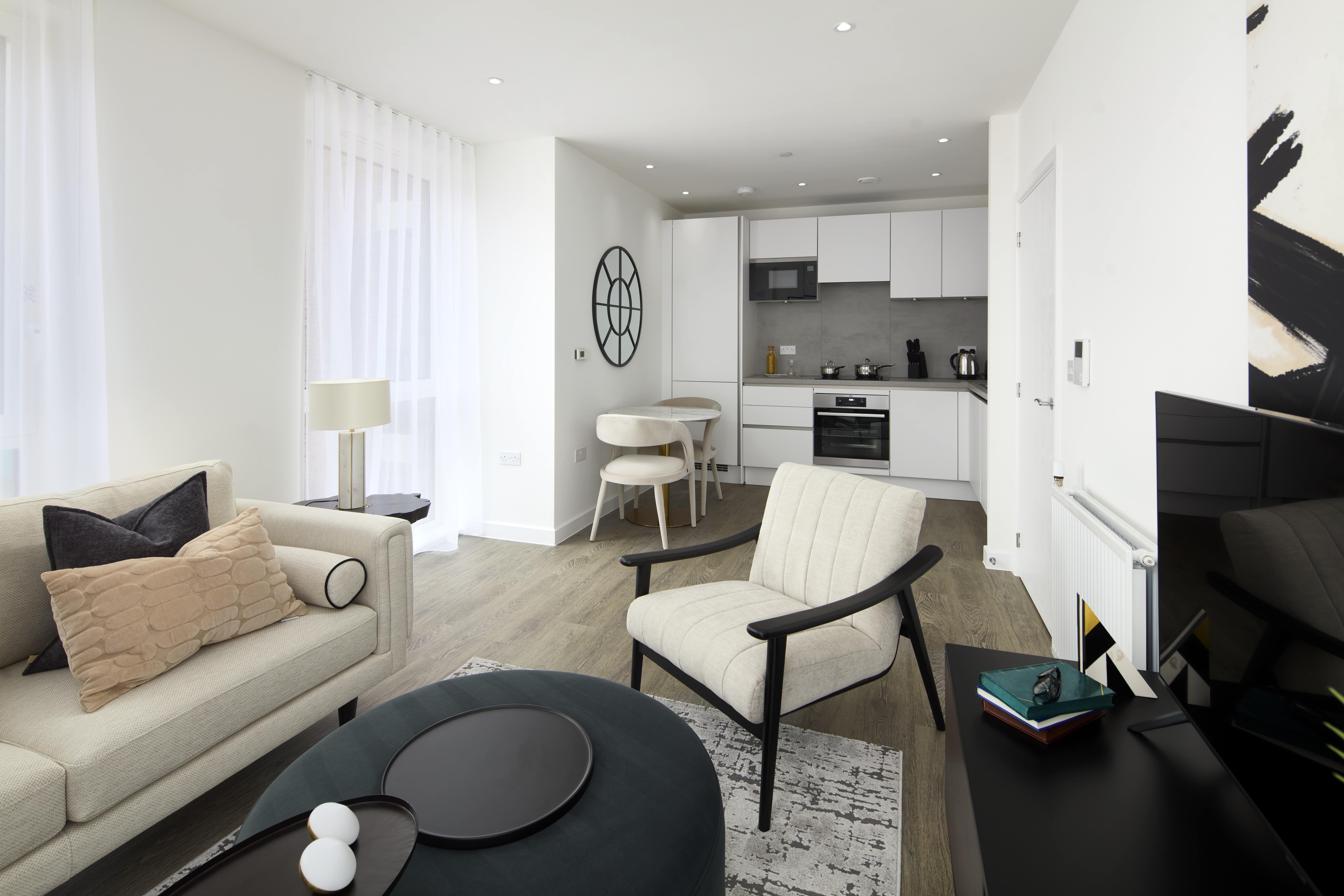 Ridgeway Views is a prestigious residential development located in the Mill Hill area of North West London. Set within 47 acres, this project offers residents a lifestyle surrounded by nature. The modern 1-bedroom apartments feature large windows and open-plan living spaces. Each apartment is equipped with a private balcony or terrace, integrated kitchen appliances, and an allocated parking space. The development provides amenities such as a 24/7 concierge service, gym, restaurant, children's play area, and fitness trail. Just a short walk from Mill Hill East Underground Station, residents can reach central London in 30 minutes. Additionally, the nearby green spaces and social amenities offer a peaceful living environment. Ridgeway Views is an ideal choice for those seeking modern living combined with proximity to nature.